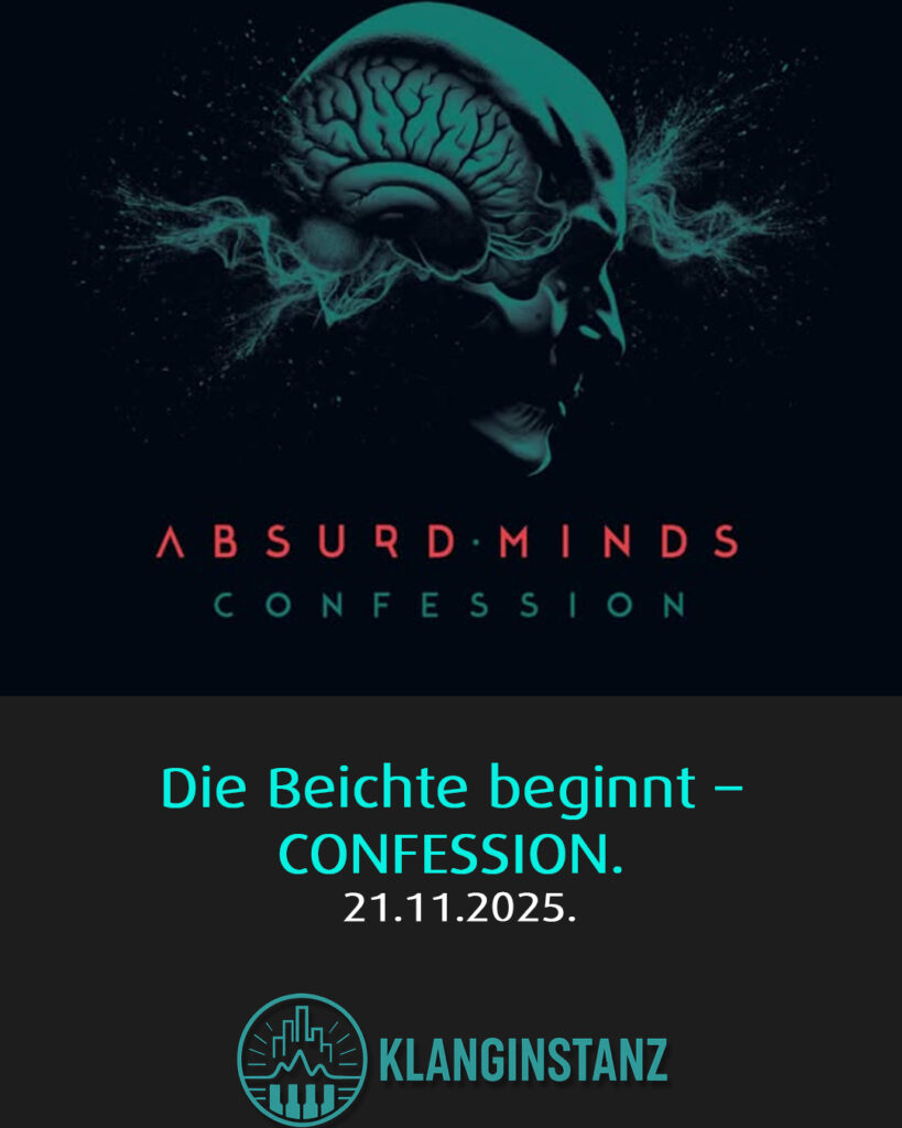 Mit „CONFESSION“ erscheint am 21.11.2025 die zweite Single zum kommenden Album CONFESSIONS – digital und als streng limitierte 7″-Vinyl. Der Track liefert klassische Absurd Minds-Stärke: druckvolle Beats, düstere Tiefe und markante Vocals. Als besonderes Highlight enthält die Single einen Project Pitchfork Remix feat. Peter Spilles, der „CONFESSION“ eine völlig neue, unverwechselbare Note verleiht.